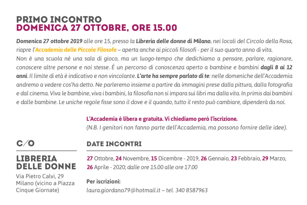 Accademia delle piccole filosofe – aperta anche ai piccoli filosofi 2019-2020