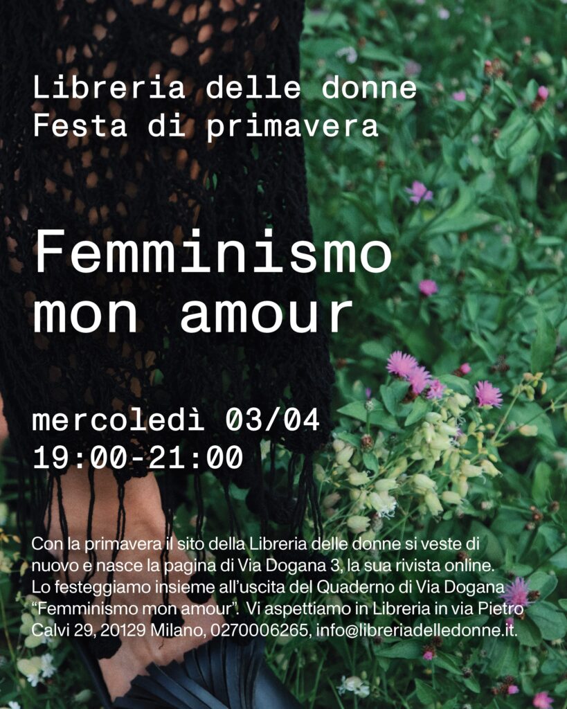 Con la primavera il sito della Libreria delle donne si veste di nuovo e nasce la pagina di Via Dogana 3, la sua rivista online. Lo festeggiamo insieme all’uscita del Quaderno di Via Dogana “Femminismo mon amour”.