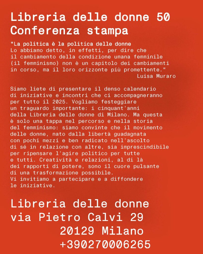 Presentazione delle attività dell’anno e aperitivo di apertura per i festeggiamenti “Libreria delledonne 50”.