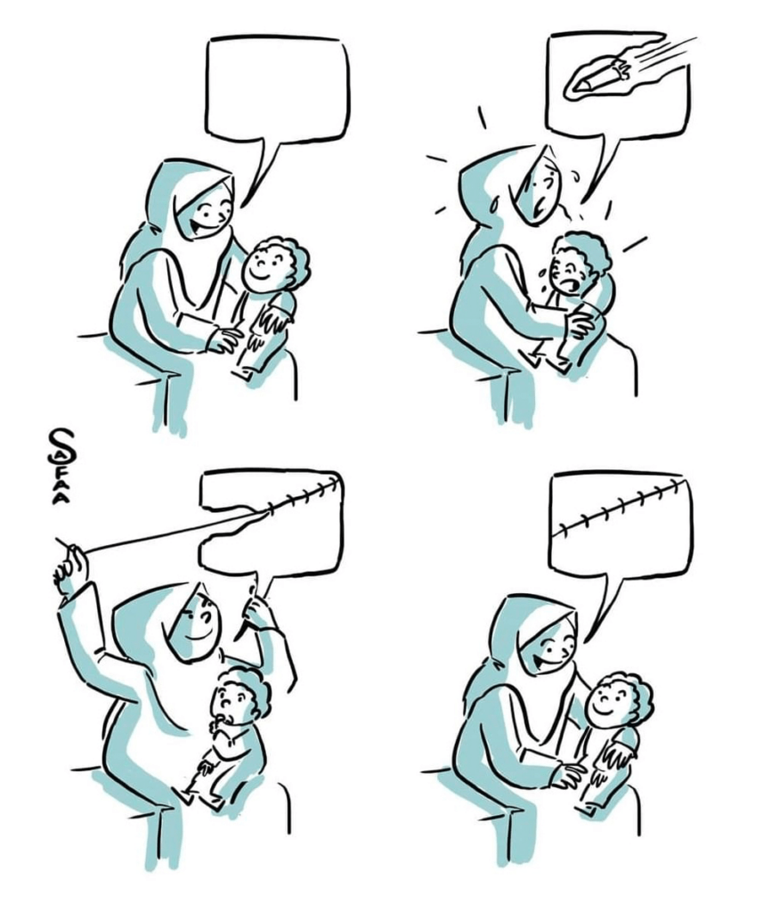 Della fumettista palestinese Safaa Odah abbiamo pubblicato anche il video “Una tenda in Palestina”, qui.