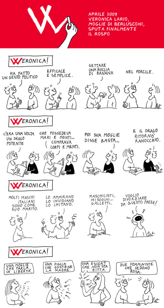 Strisce pubblicate su Il manifesto (maggio-ottobre 2009) e Sex of humour (Fandango 2011). Per approfondire i fatti, leggi Il trucco. Sessualità e biopolitica nella fine di Berlusconi di Ida Dominijanni.