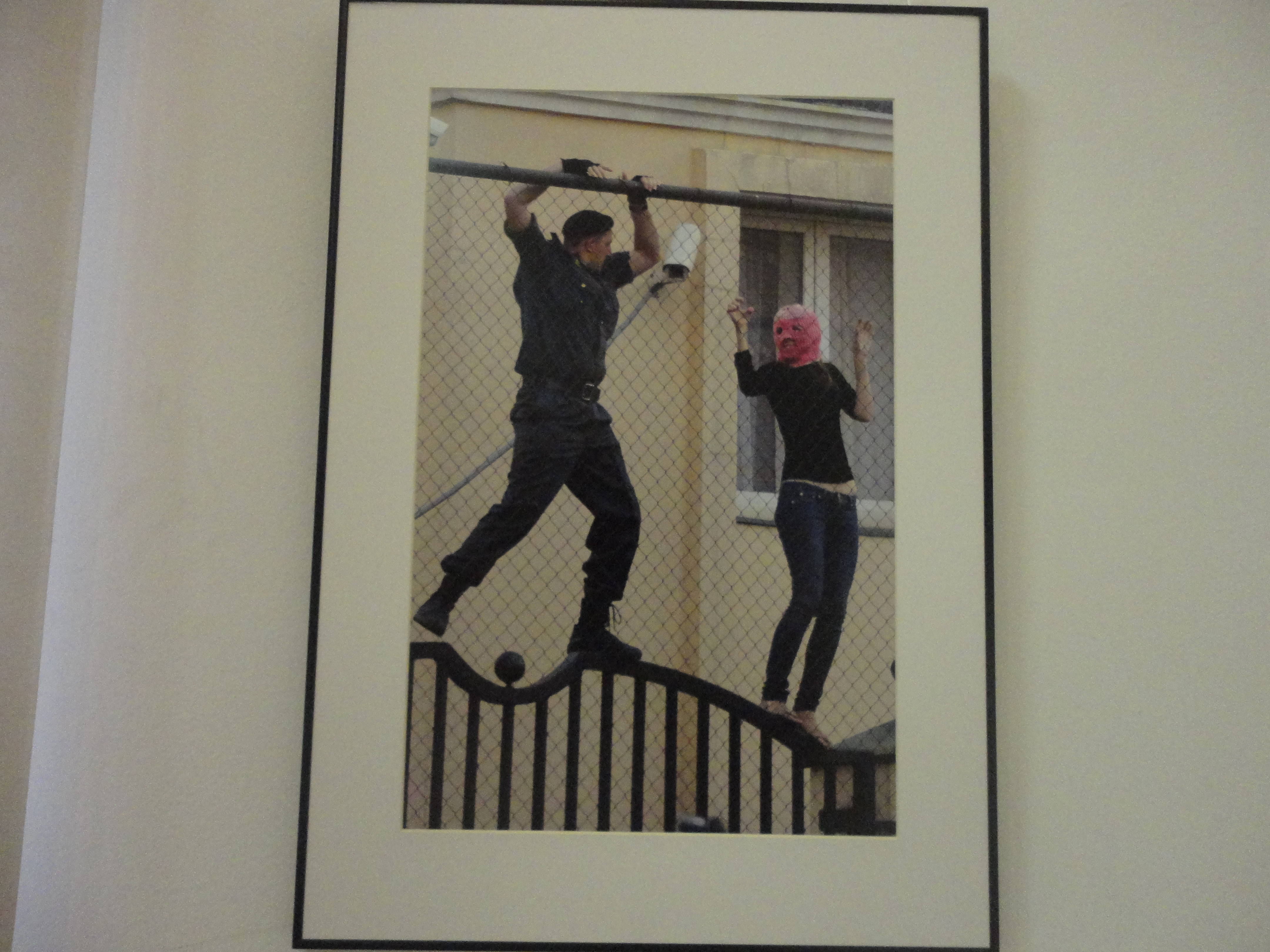 Il 29 agosto, di ritorno da Vladivostok, dove sono arrivata con la Transiberiana, ho appuntamento con Pussy-Katja alle cinque al Kutzneskij Most. Un luogo storico del centro, non lontano dalla Lubjanka, dove un tempo scorreva il fiume Neglìnnaja e ora via pedonale. Eccola di corsa, quasi non la riconosco, tanto è lo scarto fra la realtà viva e l’immagine sullo schermo; dal vivo, in presenza, sono quasi folgorata dall’energia e dalla forza che sprigionano il suo sguardo mobilissimo e il suo corpo. La figura di un folletto mi è venuta alla mente, una forza soprannaturale, non di questo mondo, con cui sono entrata in contatto, mi ha fatto pensare che sia frutto della libertà che lei e il gruppo incarnano. Tornando a questo mondo, ci sediamo in un caffè all’aperto. Lei ordina un maxi-cappuccino, io un maxi-tè, e comincio a tempestarla di domande. Katja mi racconta che il suo tempo lo passa con avvocati/e per presentare istanza di appello, a tutti i livelli, contro la condanna di Nadja e di Mascia, per ottenere una riduzione della pena. Inoltre si occupa della causa legale contro chi si è appropriato e sfrutta, senza il loro consenso, il logo del gruppo. Durante la nostra conversazione Katja mi spiega che è molto complicato far visita a Nadja e Mascia; occorre una lunga trafila burocratica per ottenere i permessi necessari. Solo i familiari possono andare. Inoltre Nadja è sottoposta al regime di detenzione più duro, con controllo delle lettere che scrive e che riceve. Invece Mascia, dopo lo sciopero della fame, ha ottenuto qualche miglioramento delle condizioni di vita. Lei è curiosa di sapere se sono già andata alla Cattedrale di Cristo Salvatore. Certo, subito, e mi è sembrato di entrare in un aeroporto, tanti sono i controlli per la sicurezza con metal detector e un sacco di “milizia” in divisa e privata, cui occorre mostrare il contenuto delle borse. Una novità: pare che le gerarchie ecclesiastiche stiano ammorbidendo la posizione di dura condanna nei loro confronti. Un alto esponente della chiesa ortodossa ha scritto una lettera in cui dichiara che occorre perdonare e non demonizzare le Pussy Riot. Katja pensa per ragioni strumentali, in vista dei Giochi Olimpici di Sochi del 2014. La parola “femminismo” invece continua a essere oggetto di tabù nella stampa e in tutte le sedi istituzionali. Il film documentario sul processo, la protesta e la loro storia, Pussy Riot – A Punk Prayer (titolo originale Pokazatelnyy protsess: Istoriya Pussy Riot) di Mike Lerner, Maxim Pozdorovkin, verrà forse proiettato a Mosca in dicembre all’interno di un festival del cinema. Finora, dice Katja, è stato proiettato solo al Sundance festival, a NewYork, a Roma, al MAMbo di Bologna e in Ucraina.