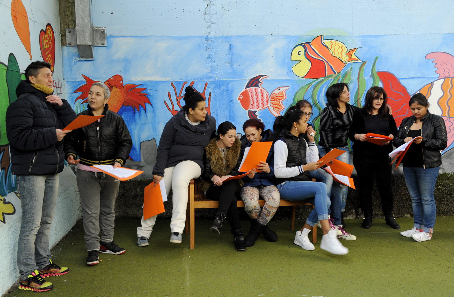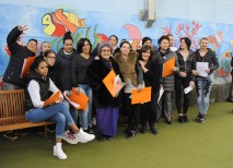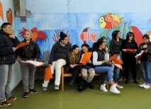 In uno dei sei raggi di San Vittore vivono una sessantina di donne, detenute in attesa di giudizio o provenienti dagli ospedali psichiatrici giudiziari recentemente chiusi. Al mural hanno lavorato Angela, Anna, Cadrie, Cinzia, Fatimah, Macarena, Malika, Monica, Marta, Martina, Roberta, Roxana, Sumia, Veronica, Zainab… che l’hanno presentato leggendo testi e poesie in italiano, spagnolo, arabo. Nelle foto di Monia Di Santo si vede il gruppo del Laboratorio (1) e un momento della presentazione (2), nella foto di Tullio Quaianni un particolare dell’opera (3).