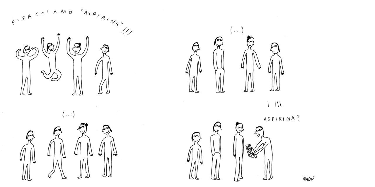 La redazione di Aspirina, rivista umoristica disegnata e scritta, annuncia su carta la nascita della rivista online.