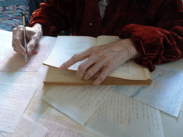 Incontro con Donatella Franchi e presentazione del suo libro d’artista A Clotilde dedicato alla madre. “Per stare accanto a mia madre ho cercato di mettere a fuoco i gesti con cui si esprimeva. È sempre stata una lettrice, e anche negli anni della sua vecchiaia teneva sempre un libro in mano, con delicatezza, come un corpo vivo. Era il suo legame con la vita, con la propria storia. Ho fotografato così le sue mani che reggono il libro o riposano su di esso, ispirandomi alla grande tradizione artistica dei ritratti, dove i personaggi, spesso malinconici e pensosi, tengono in mano un libro…”