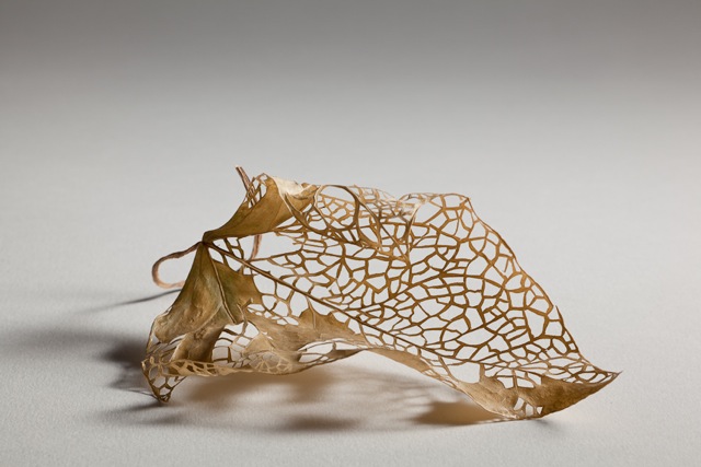 Le Geografie Personali di Elisabetta Di Maggio si concentrano sui movimenti lenti, invisibili ma presenti, che avvolgono la vita fisica, mentale, immaginativa. Individua il punto di sutura col quale traccia l’immagine, intagliando la carta velina, la porcellana, le foglie, ricamando su carta, come in questo caso.