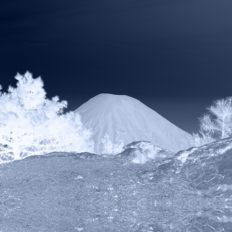 Il controluce fa apparire la vegetazione come una massa spumosa, accecante e il cielo come un fondo nero opaco, compatto. L’immagine vira nella staticità e nel silenzio della scultura.