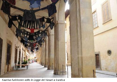 Ve lo avevamo raccontato qualche giorno fa, in occasione dell’opening. Ad Arezzo sabato si è aperta la prima Biennale, “Icastica”: un progetto tutto declinato al femminile e intitolato “Glocal Woman”. E come in tutte le manifestazioni d’arte contemporanea che si rispettino non poteva mancare un primo premio. E se a Venezia ci sono profusioni di Leoni, nella cornice romantica di Arezzo vola invece una “Chimera d’oro”. Che quest’anno arriva dritta dritta a Kaarina Kaikkonen, artista finlandese sdoganata in Italia grazie al supporto della gallerista romana Sara Zanini, al Pastificio Cerere e, l’anno scorso, anche grazie alla Collezione Maramotti, con una splendida installazione intitolata Are We Still Going On? Ad Arezzo la Kaikkonen ha portato, declinata in nero e a colori, un’installazione articolata su oltre 120 metri tra le Logge del Vasari e Piazza Libertà, che sarà visibile fino al prossimo 1 settembre. La scelta di assegnare la “Chimera” a Kaikkonen è arrivata dalla giuria composta da Marco Bazzini, direttore del Pecci di Prato, Maria Grazia Bellisario, Sovrintendente MIBAC; dalla critica Laura Cherubini, Maria Vittoria Marini Clarelli della GNAM di Roma; Micol Forti dei Musei Vaticani, Roma; Michele Loffredo di Casa Vasari; dall’Assessore alla cultura della città toscana Pasquale Giuseppe Macrì, dalla direttrice del MAXXI Arte Anna Mattirolo, dal curatore e presidente di “Icastica” Fabio Migliorati, Franziska Nori della Strozzina, dal filosofo Mario Perniola e Paola Refice, del Museo Nazionale d’Arte Medievale e Moderna di Arezzo. Il secondo e terzo premio di “Icastica” sono andate invece all’artista palestinese Raeda Sa’adeh e all’indiana Monali Meher.