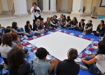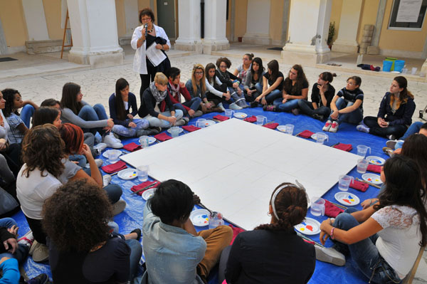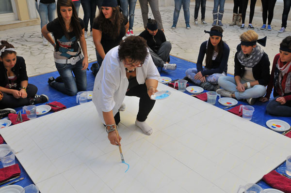 Ma concepire un’opera attraverso un happening pittorico nel quale un gruppo di persone vengono invitate a creare senza pianificazione, è tutt’altra questione: è necessario saper guidare le dinamiche relazionali e divenire mezzo di connessione tra le individualità.”